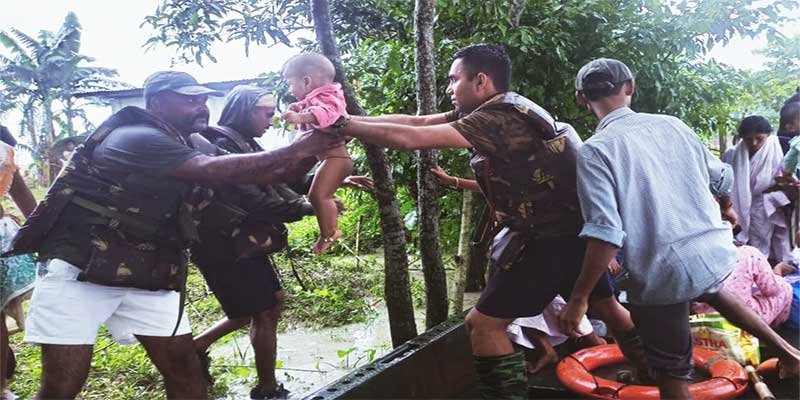 In Nalbari District, the Indian Army columns which were on standby quickly reached Sathikuchi village and rescued 105 stranded locals. Simultaneously another column of Gajraj Corps out relief operations in