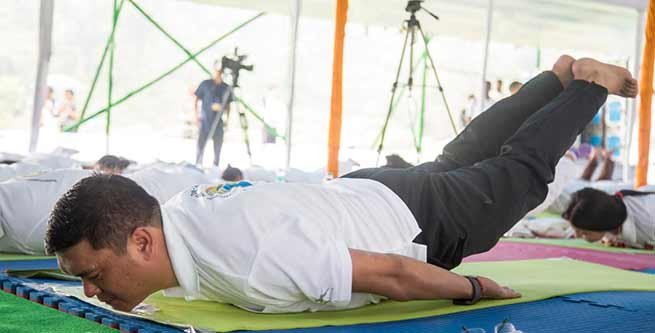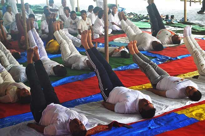 Where PM Modi led an estimated 50, 000 volunteers to mark the fourth anniversary of International Yoga Day at Dehradun, on the same time it was celebrated all over northeast .