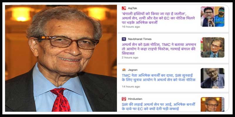 Nobel Laureate Dr Amartya Sen Gets SIR Notice Over Voter List Discrepancy
