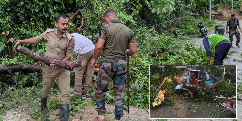 Sepahijala district reported widespread damage, with 61 houses affected in Bishalgarh, 91 in Sonamura, and 98 in Jampuijala. Road clearance operations were ongoing in several areas. In West Tripura’s Sadar subdivision, 28 road blockages were reported and later cleared, while Mohanpur recorded 37 damaged houses.